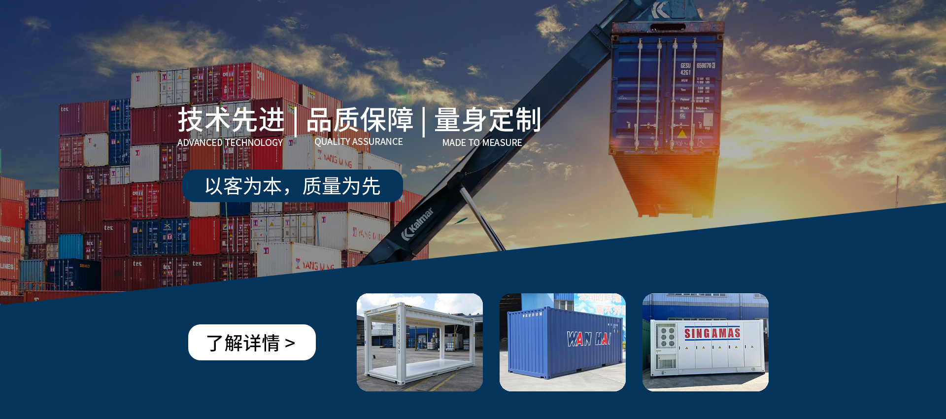 公司位于同安工業(yè)集中區(qū),占地150多畝,注冊資本2300萬美元,員工近1000名,擁有五十三多項技術(shù)專利,建有標準箱和定制箱生產(chǎn)線及專用集成車間,單班年產(chǎn)能可達十五萬標準箱。憑借自身合理完善的運營機制,公司除獲得包括中國船級社在內(nèi)的國際各大船級社的認證外,還通過了ISO質(zhì)量管理體系和環(huán)境管理體系認證......